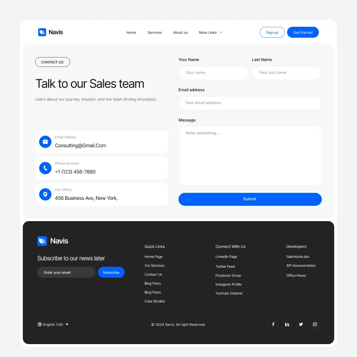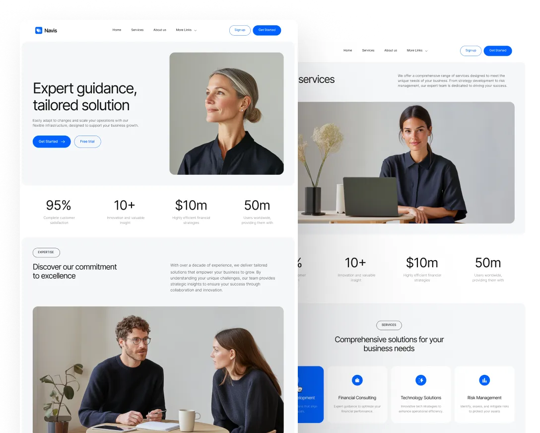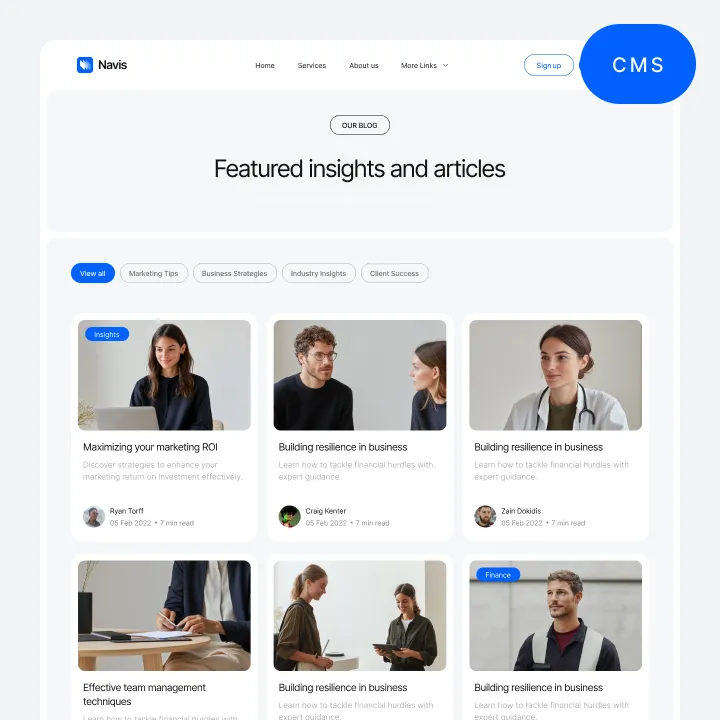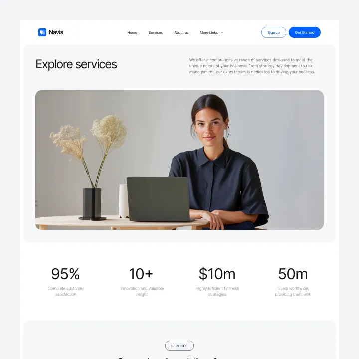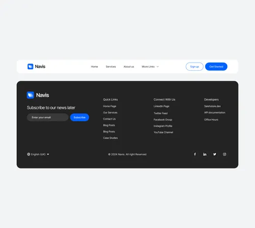 Navis Webflow Template offers customizable header and footer, seamlessly adapting to your business needs.